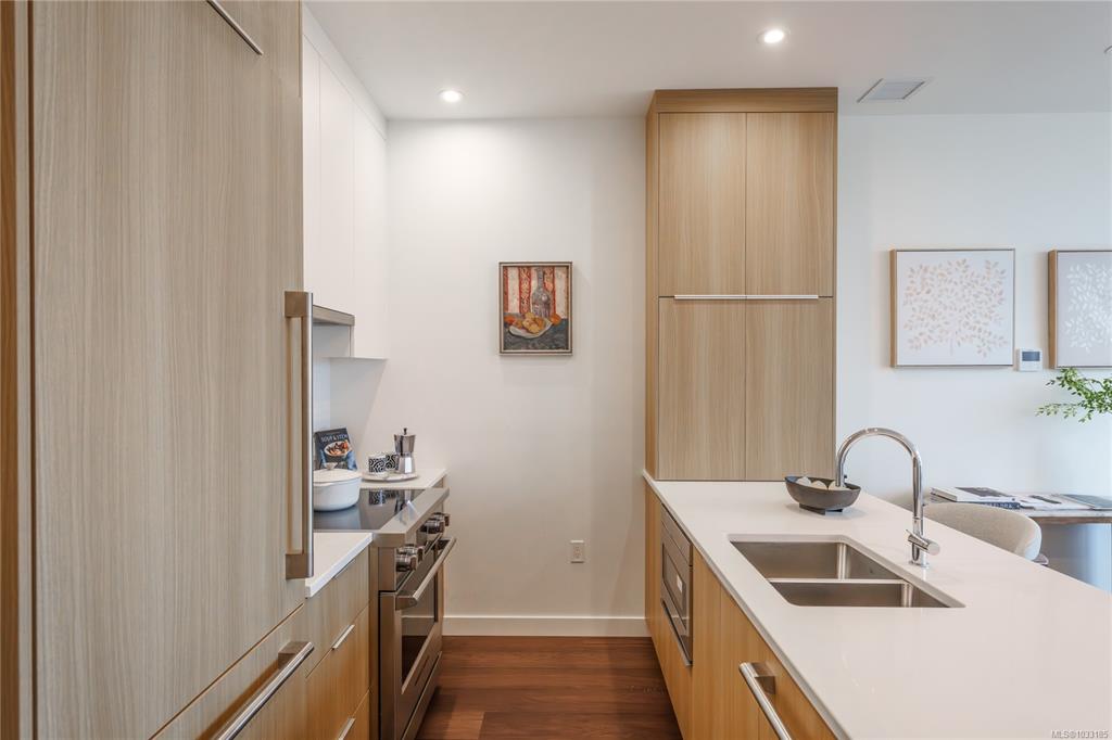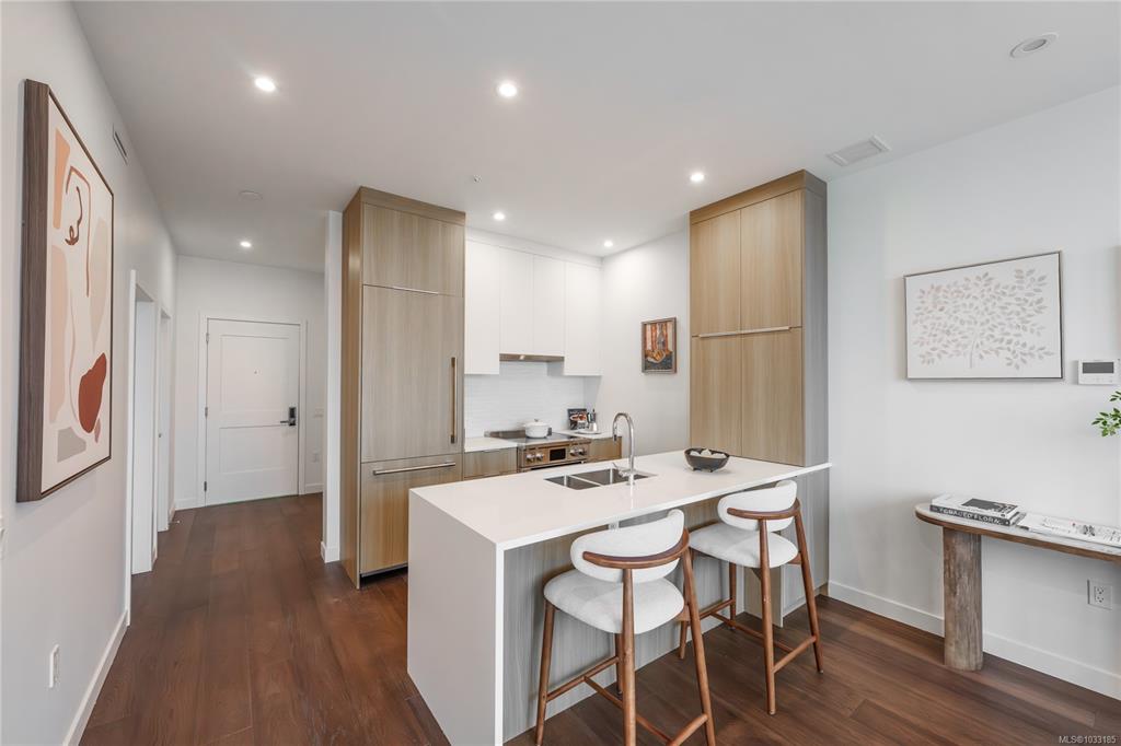 Welcome to Unit 307 at The Rise on Fifth, a beautiful west-facing home where you can enjoy captivating sunsets & tranquil mountain views. This elegant residence boasts a bright, open-concept layout with a gourmet kitchen featuring quartz waterfall countertops and a premium built-in Fisher & Paykel appliance package, perfect for both everyday living & entertaining. Relax on your private patio, ideal for morning coffee or unwinding after a long day. The spa-inspired bathrooms impress with floating vanities, s...