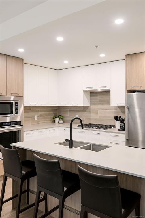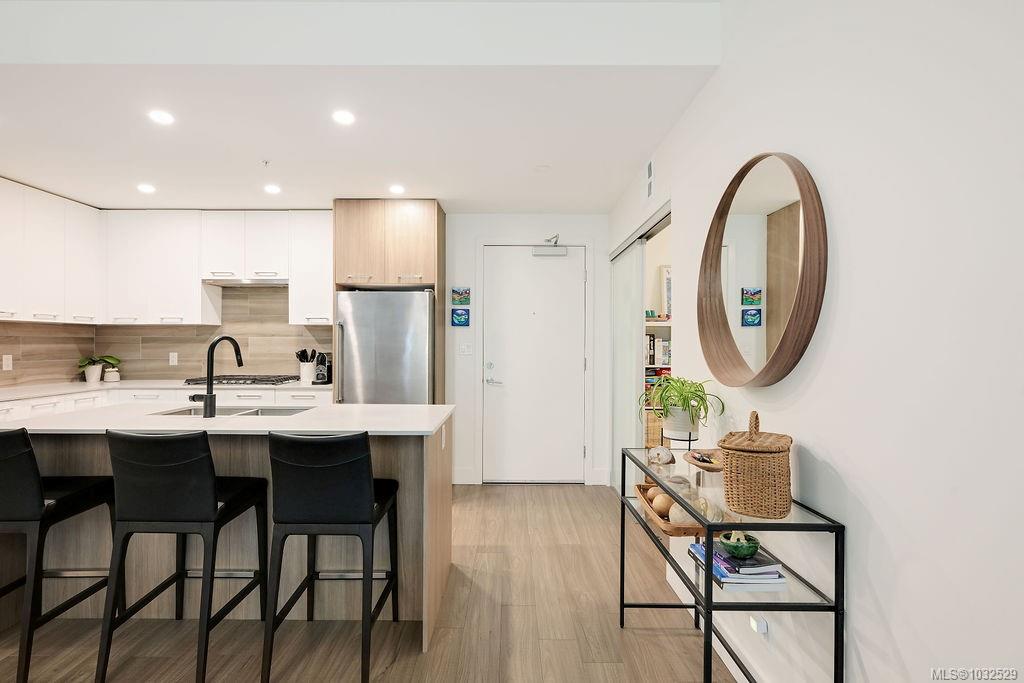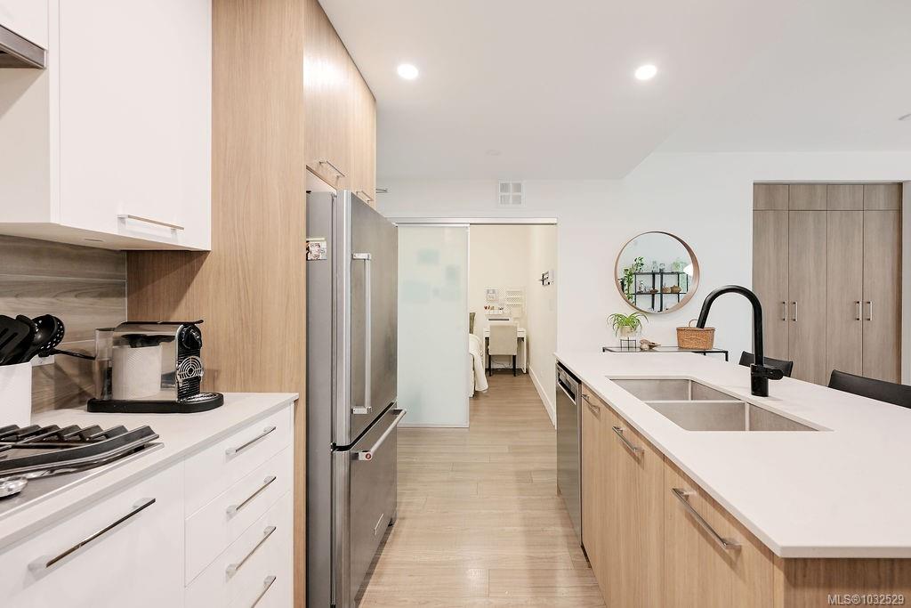 A rare 280 sq ft terrace paired with a 996 sq ft fenced lawn — south-facing and soaking in full sun, creating an incredible extension of your living space. Meticulous & truly turnkey, this home offers the ease of condo living with a layout & outdoor space that feels more like a townhome. Inside, the floor plan features 2 bedrooms + a den that comfortably works as a 3rd bedroom or office, two full bathrooms, & a generously sized laundry room with excellent storage. Beautifully finished throughout, stainles...