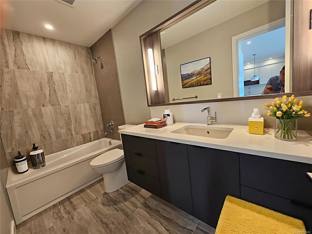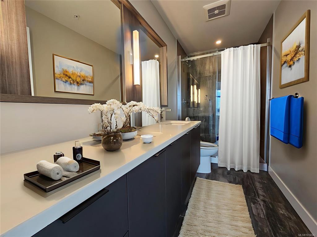 VERY MOTIVATED SELLERS. Step into modern luxury with this stunning 2-bedroom, 2-bathroom condo, complete with 2 PARKING STALLS. The spacious, open-concept design is enhanced by soaring ceilings & large windows that bathe the space in natural light. Both bedrooms are generously sized, each with its own ensuite, while the primary bedroom also boasts a walk-in closet for added convenience. The chef-inspired kitchen features stainless steel appliances, quartz countertops, & a large island perfect for entertaini...
