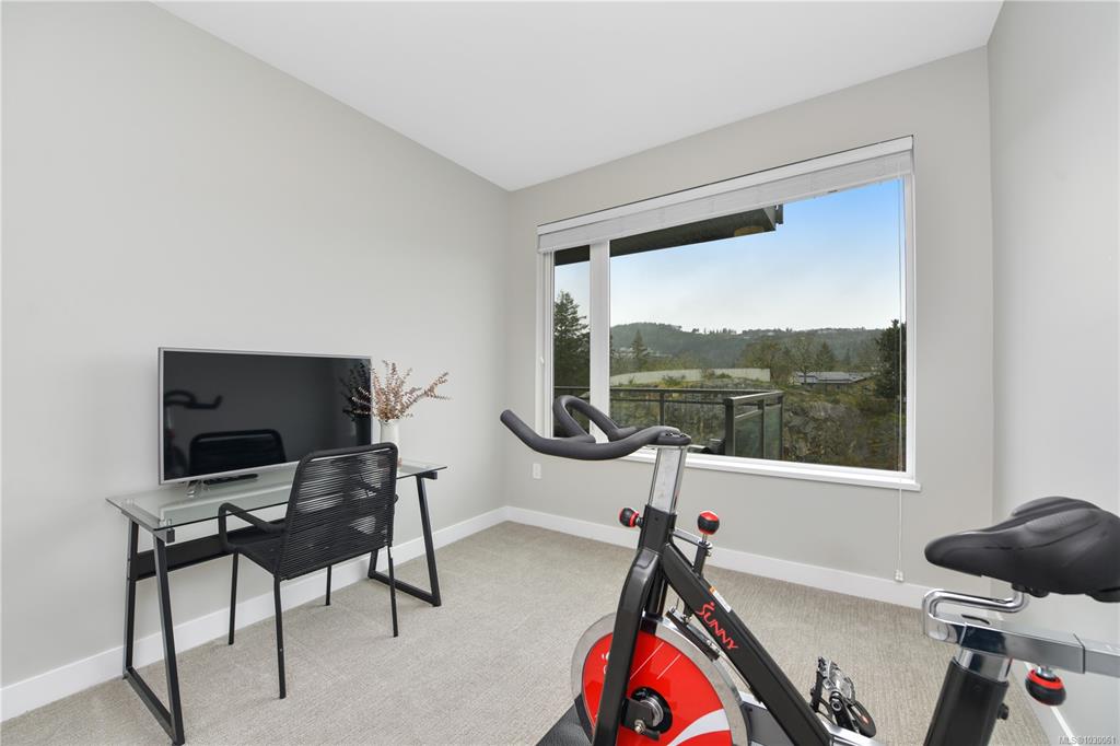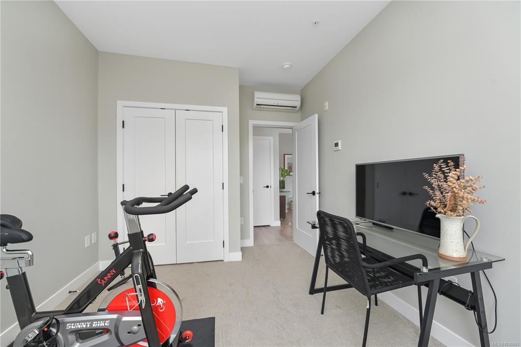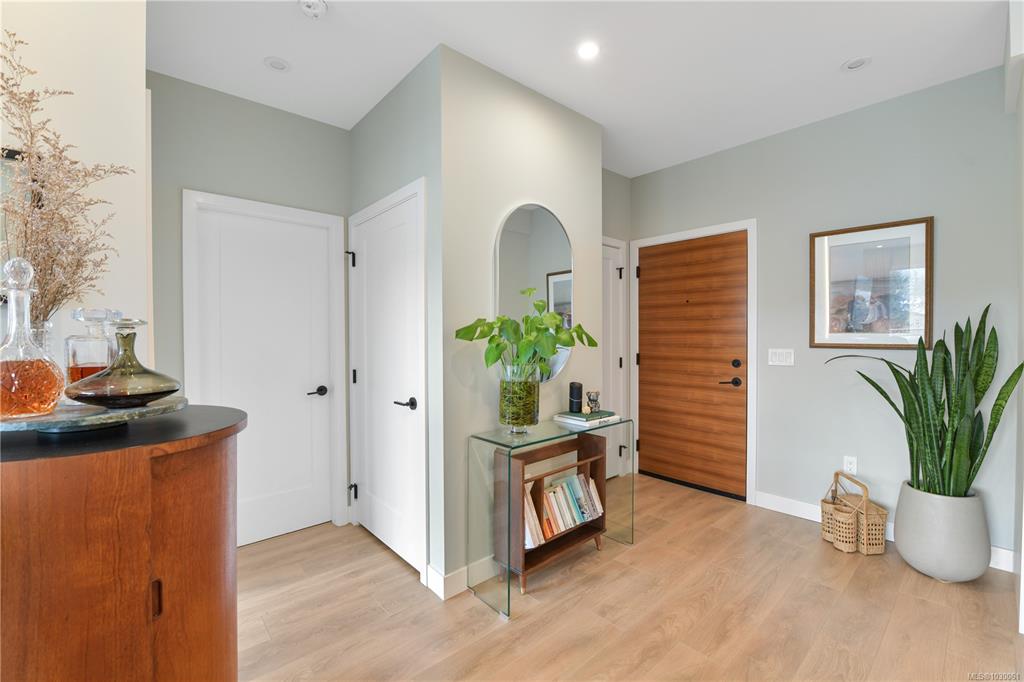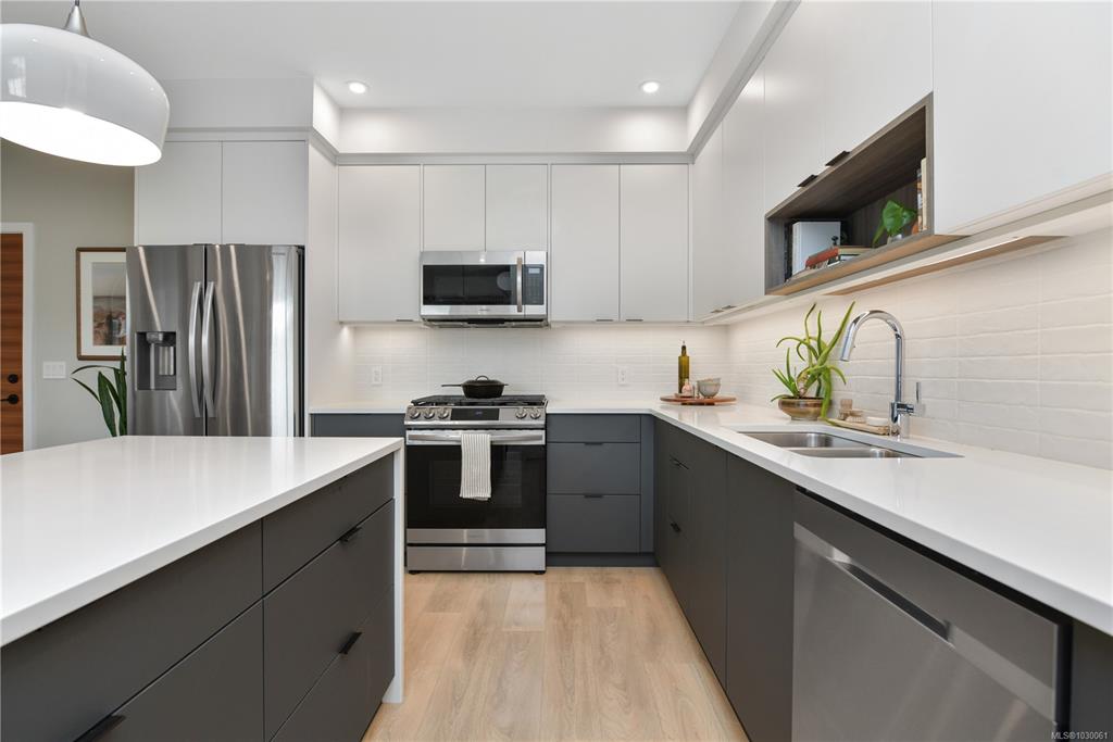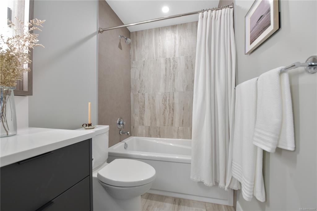 Welcome to this bright & beautifully appointed 2-bedroom, 2-bathroom condo on the quiet side of the building in the vibrant Florence Lake neighbourhood of Langford. This modern home offers an open-concept layout filled w natural light and lovely views. Chef-inspired kitchen features quartz countertops, stylish 2-toned cabinetry & premium appliances including a gas range. A striking back-lit fireplace creates a warm focal point in the living area, while the large covered balcony offers excellent privacy with...