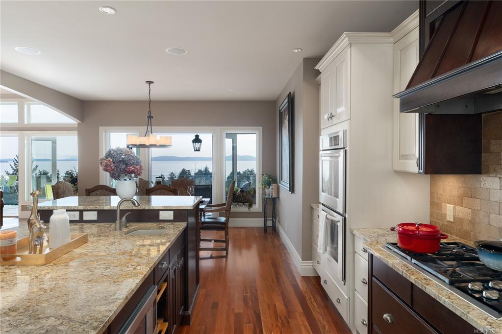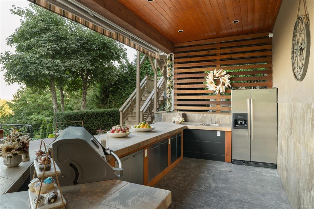 Extended to Nov. 30th. 970 Seapearl is a custom 2008 luxury residence marrying architectural elegance, structural integrity, and West Coast nature. Over 4,000 sq ft, 4 beds/5 baths, cherrywood floors and 12' ceilings frame ocean-to-mountain panoramas: Haro Strait, Mt. Baker, Cordova Bay, Mt. Douglas, and the Olympics. Outdoor living tops 1,000 sq ft across dual decks with hot tub, plus a below-deck garden with a gentle river, pond, stone backdrop, and statue. The courtyard is four-season—outdoor kitchen, ga...