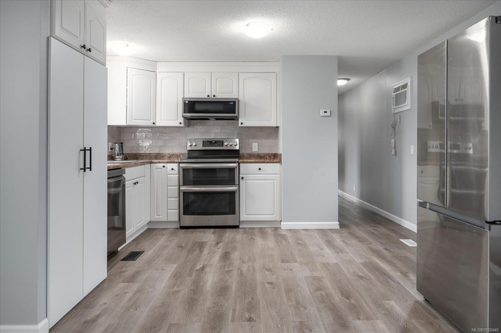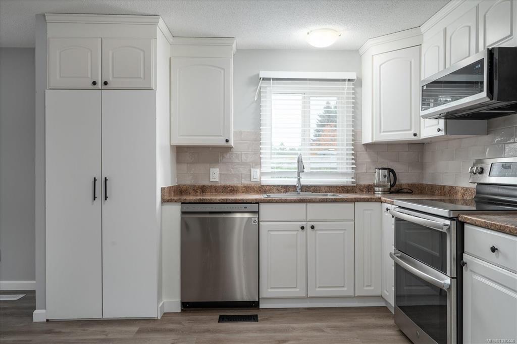 Family and pet friendly living awaits at popular Park Lane Mobile Home Park, a rare feature in Nanaimo parks! This 3 bed/1 bath, 919 s/f home offers exceptional value with extensive upgrades in the last 4 years - including vinyl siding, new flooring and paint throughout, completely remodeled bathroom, PEX plumbing throughout, new lighting, stainless steel kitchen appliances, and a newer roof. Vinyl windows were installed by previous owners approx 2007. The bright kitchen features abundant cabinetry and a m...