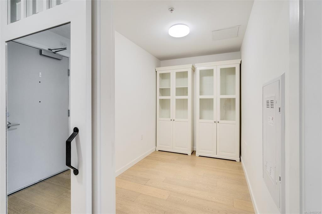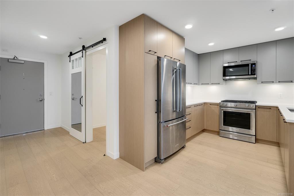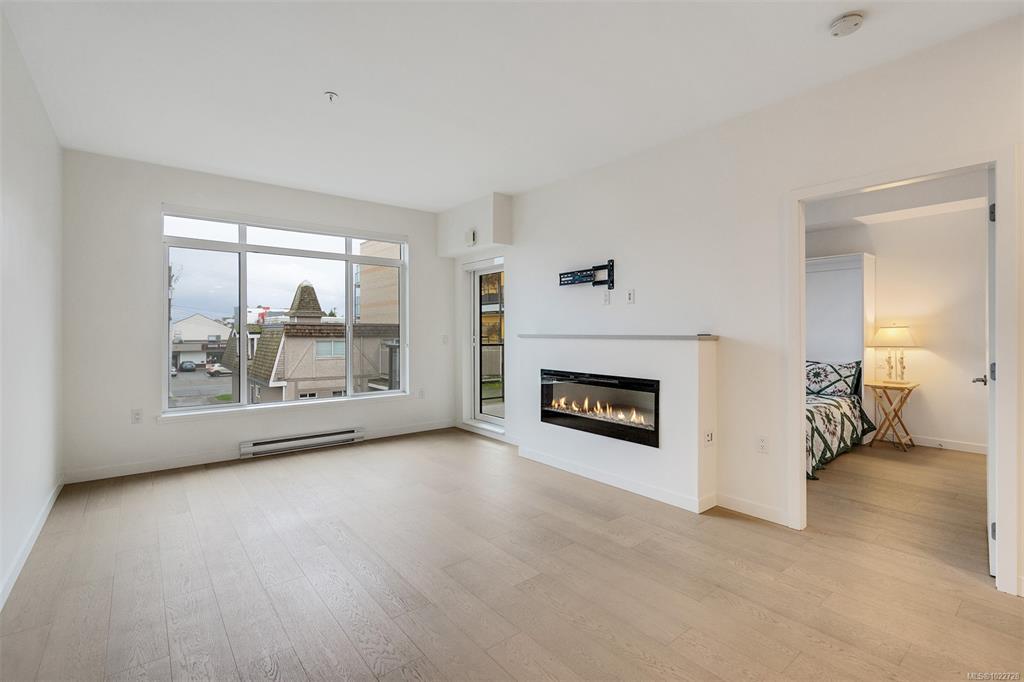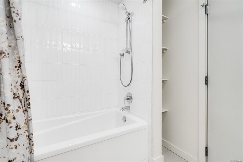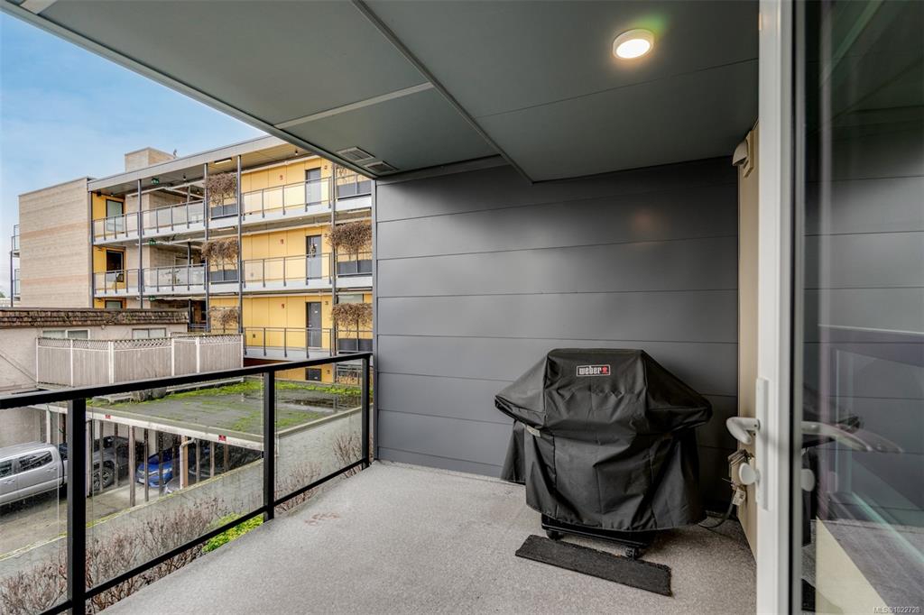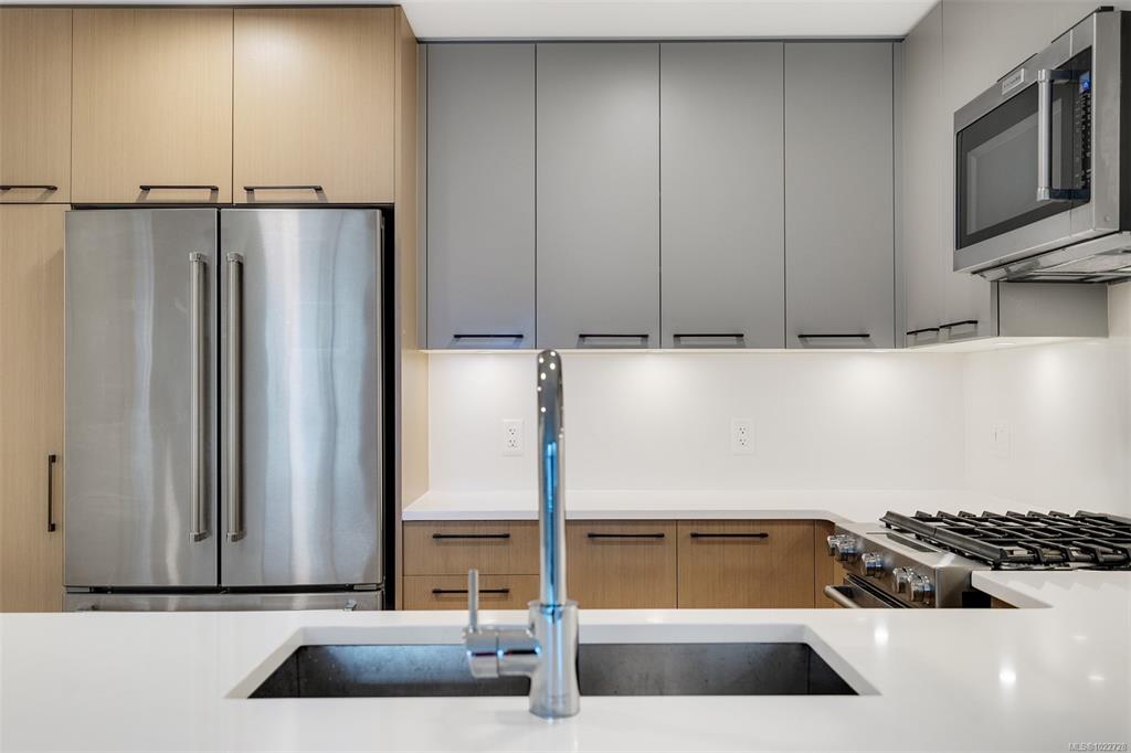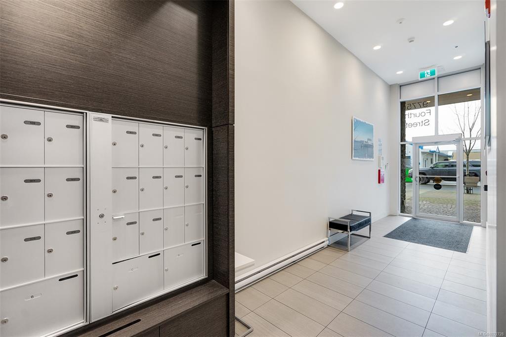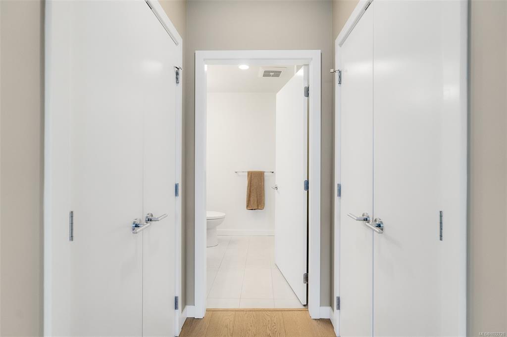 Two bedroom two full bathroom plus large den unit at The Quartet in downtown Sidney! Immaculate condition, durable construction built in 2019 and ready for immediate occupancy. Large 1060sqft floorplan plus 100sqft covered balcony with gas outlet for year round enjoyment to enjoy sunrises and your morning coffee. Unit features nine foot ceilings, open concept design with bedrooms on opposite sides, large 10x7 den/office a very flexible space, primary bedroom with double closets and ensuite with walk-in show...