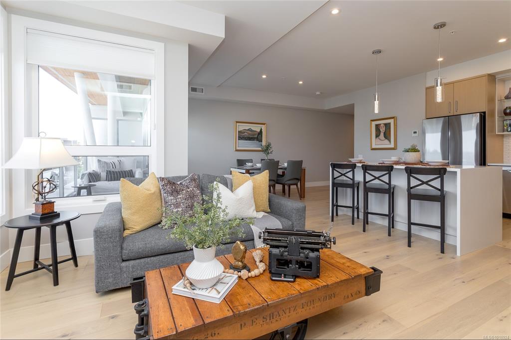 Welcome to the heart of Sidney-by-the-Sea, where everyday life feels like a getaway. Step outside to the waterfront, vibrant markets, and cozy cafés that define this friendly coastal town. Built in 2023 and still under home warranty, this modern 2-bed, 2-bath condo offers 1,244 sq ft of refined living with 9-ft ceilings, huge windows, AC, in-suite laundry and two private balconies. The kitchen pairs form and function with quartz countertops, a gas range, and premium appliances, flowing seamlessly into a bri...