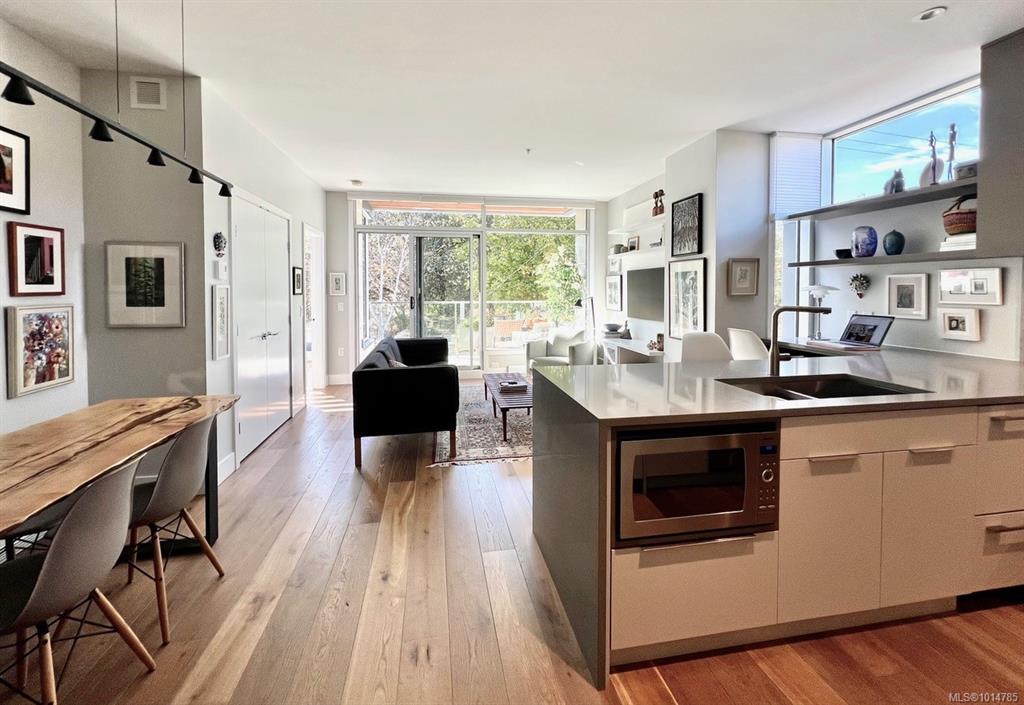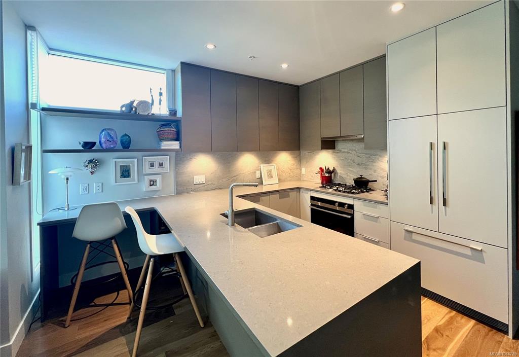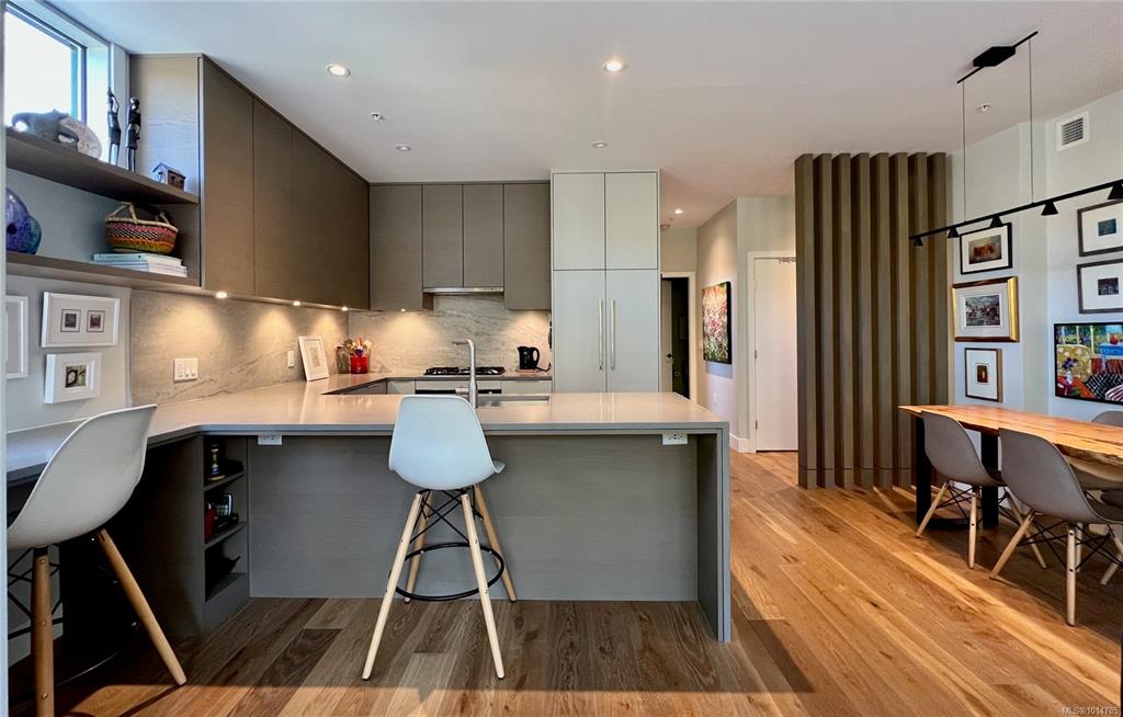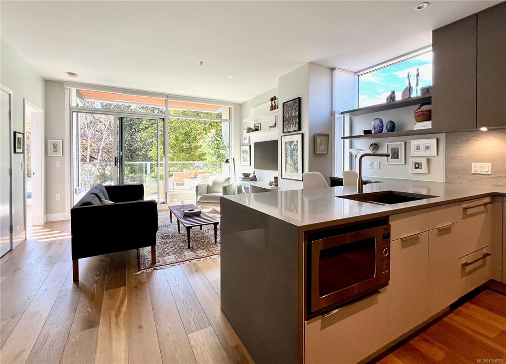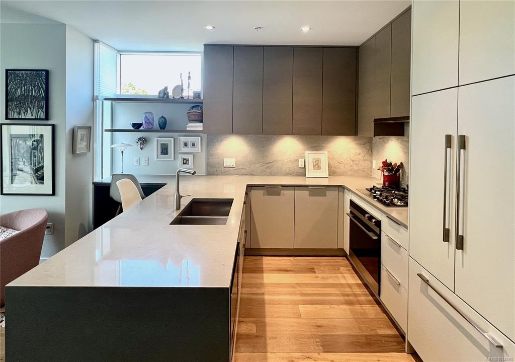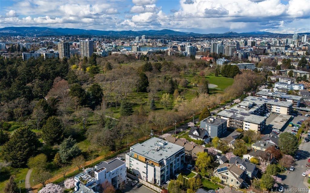 In what must be one of the best locations in Victoria, this beautifully appointed 2 bed, 2 bath corner unit in a luxury boutique building offers stunning unobstructed views of Beacon Hill Park from all rooms and a glorious west-facing balcony. In this nearly new, architect-designed concrete and steel building, the condo offers a modern open concept layout. The chef's kitchen features high end Fisher & Paykel appliances, quartz counters, full height cabinets, a handy office nook and pantry with custom built-...