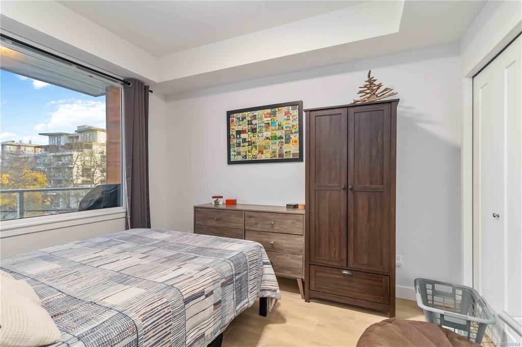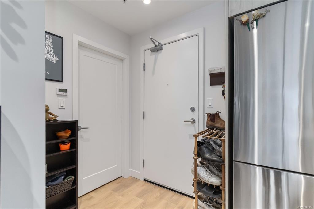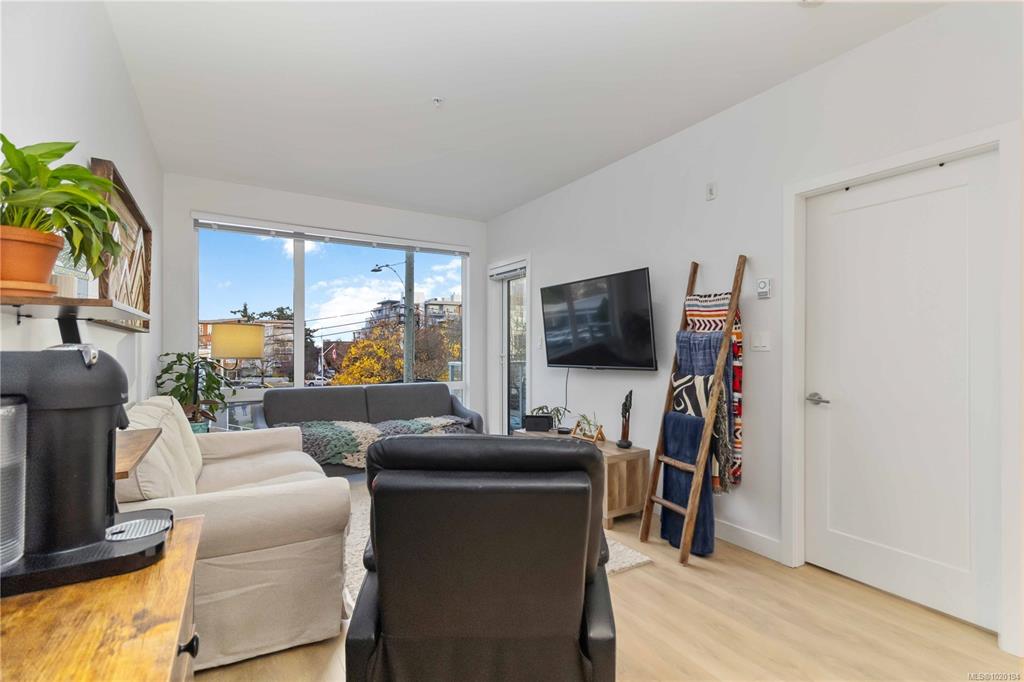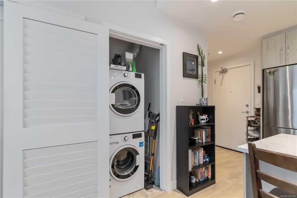 Welcome to The Breeze. This modern 1-bedroom, 1-bath condo is perfectly situated just steps from everything the charming seaside town of Sidney has to offer. Enjoy boutique shops, cozy cafés, breweries, wine bistros, beaches, parks, and scenic walking trails all within easy reach. This bright and stylish home features floor-to-ceiling windows that flood the space with natural light, complemented by sleek quartz countertops, stainless steel appliances, and convenient in-suite laundry. Take in peekaboo ocea...