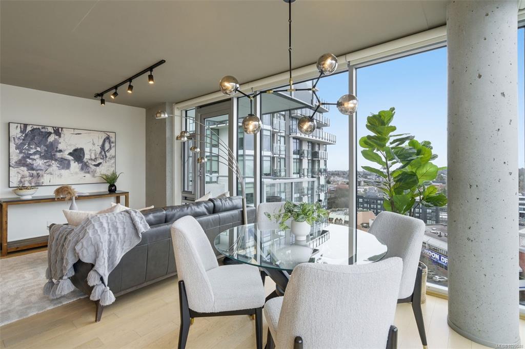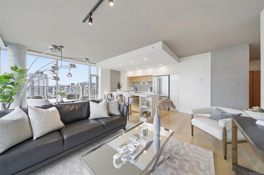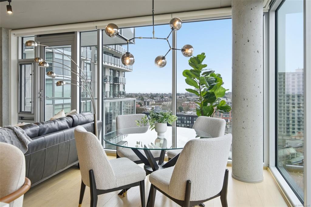 Experience elevated urban living in this stunning southwest corner unit in the West tower at 989 Johnson. Wrapped in floor-to-ceiling glass, this home offers front-row seats to Victoria’s skyline, the Olympic Mountains, and the Salish Sea. Freshly painted and meticulously maintained, this sought-after floorplan features premium upgrades like new lighting, updated plumbing, and boasts refined wood and concrete details throughout. The bright corner layout offers light oak floors and motorized blinds, anchored...