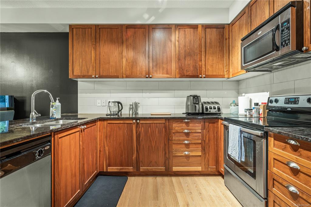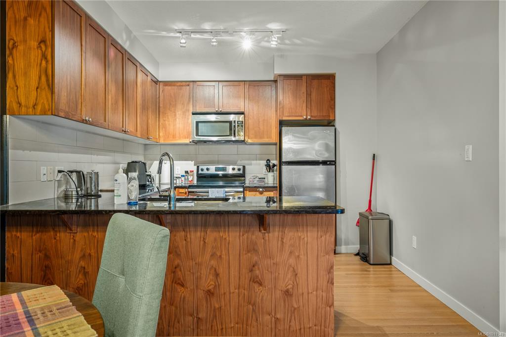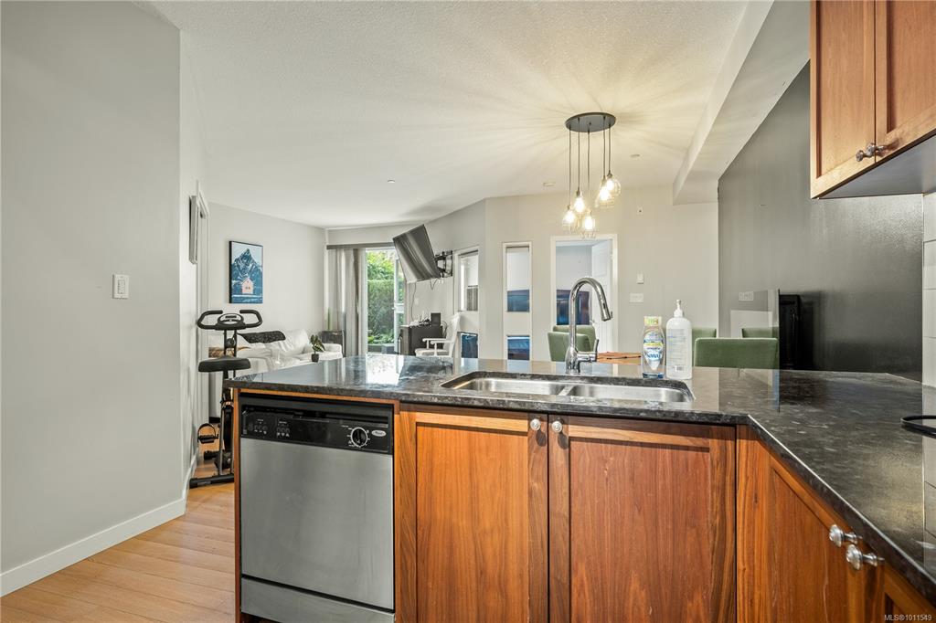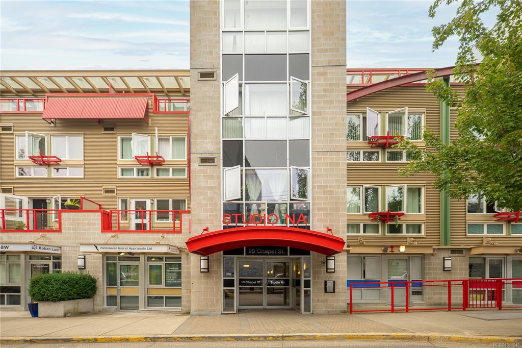 Welcome to Studio NA, one of Nanaimo’s most sought-after condo buildings. This bright 2 bed, 2 bath corner unit offers direct access to a private ground-floor patio and the lush courtyard—perfect for pet owners or anyone wanting easy outdoor access. Inside, the open concept layout features a modern kitchen with granite countertops, subway tile backsplash, stainless-steel appliances and in-suite laundry. The spacious primary bedroom includes a walk-in closet and 5-piece ensuite, while the second bedroom work...