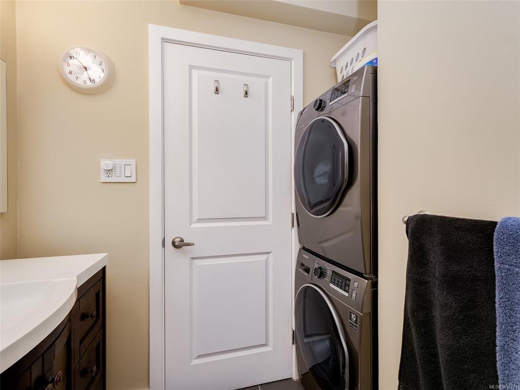 Welcome to Cloverdale Court - two level top floor unit with recent updates and in-suite laundry - one of the few in this complex that is grandfathered in! Main floor has been opened up with renovated kitchen including espresso cabinets, stainless appliances, quality laminate and bright, open living space. Upstairs two bedrooms with newer carpeting and full bathroom with a second external door in second bedroom leading to quiet top floor walkway. Lots of storage under the stairs, crown moldings and pot li...