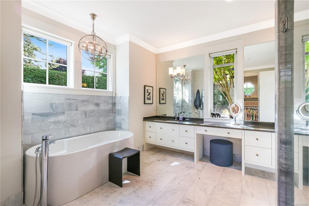 Exquisitely crafted and perfectly positioned within the prestigious Bluffs enclave, this elegant residence embodies timeless elegance and modern sophistication. Designed to embrace its rare setting, the home opens seamlessly to a broad, south-facing garden oasis, where stately firs, and graceful maples frame a private sanctuary of natural beauty. Inside, refined architecture meets uncompromising quality. Generously scaled rooms, soaring ceilings, and flawless finishes create an atmosphere of effortless lux...
