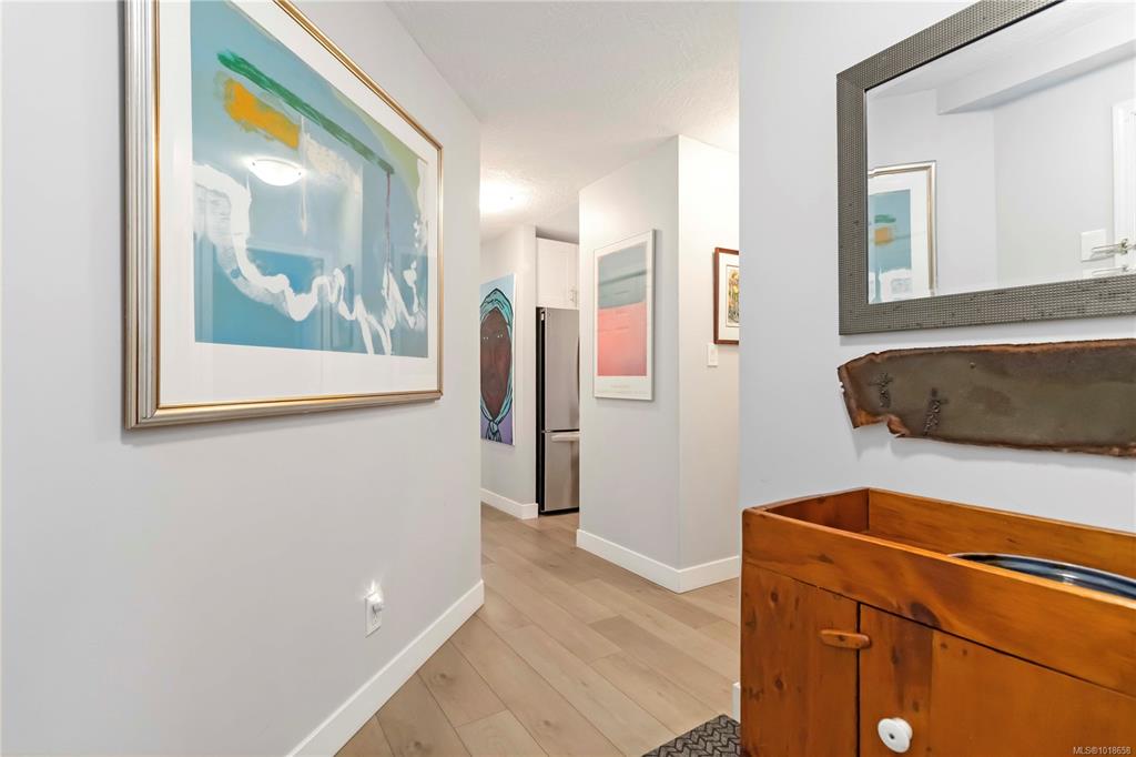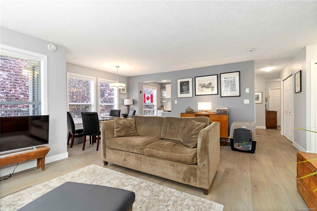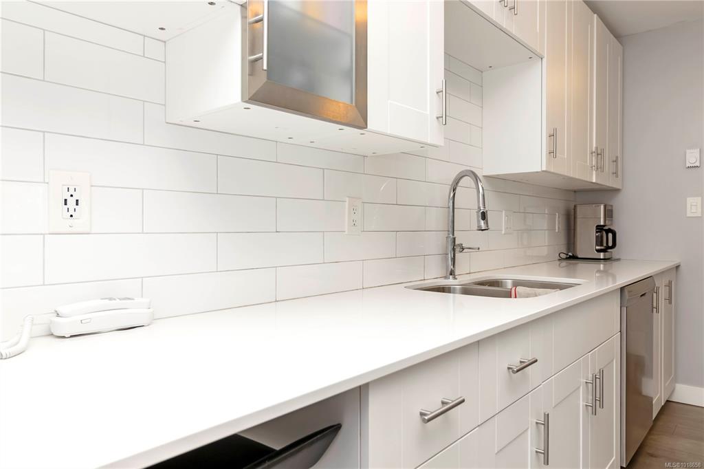 Stylish, quality-updated 2 bedroom, 2 full bathroom condo in the heart of beautiful Sidney, just 2 blocks from the ocean! This bright, corner unit, move-in-ready home features new German laminate flooring, quartz countertops, new cabinets with built-in drawers, and stainless steel appliances. Keep the lights off! Soaked in sunlight, this southwest-facing unit is filled with natural light throughout the day. Stay warm and cozy with the Valiant radiant heat gas fireplace, and enjoy year-round comfort with gas...