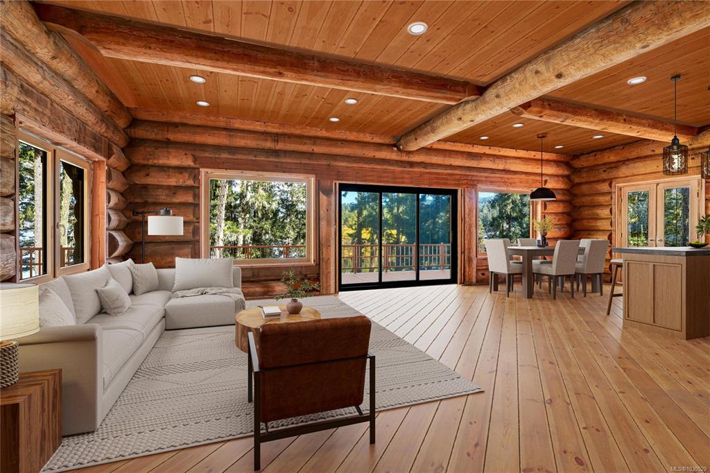 Set on a private, park-like 5-acre oceanfront at the end of Sooke Basin, this extraordinary West Coast Vancouver Island offering captures the essence of coastal living. A rare walk-on beach invites swimming, kayaking, and sunset evenings in complete serenity. The handcrafted 2,100 sq ft custom log home—framed and built to lock-up—features soaring 16’ vaulted ceilings, expansive wood windows with panoramic ocean views, and a wraparound deck with upper balconies. Designed for 4–5 bedrooms and 3 baths, it’s re...