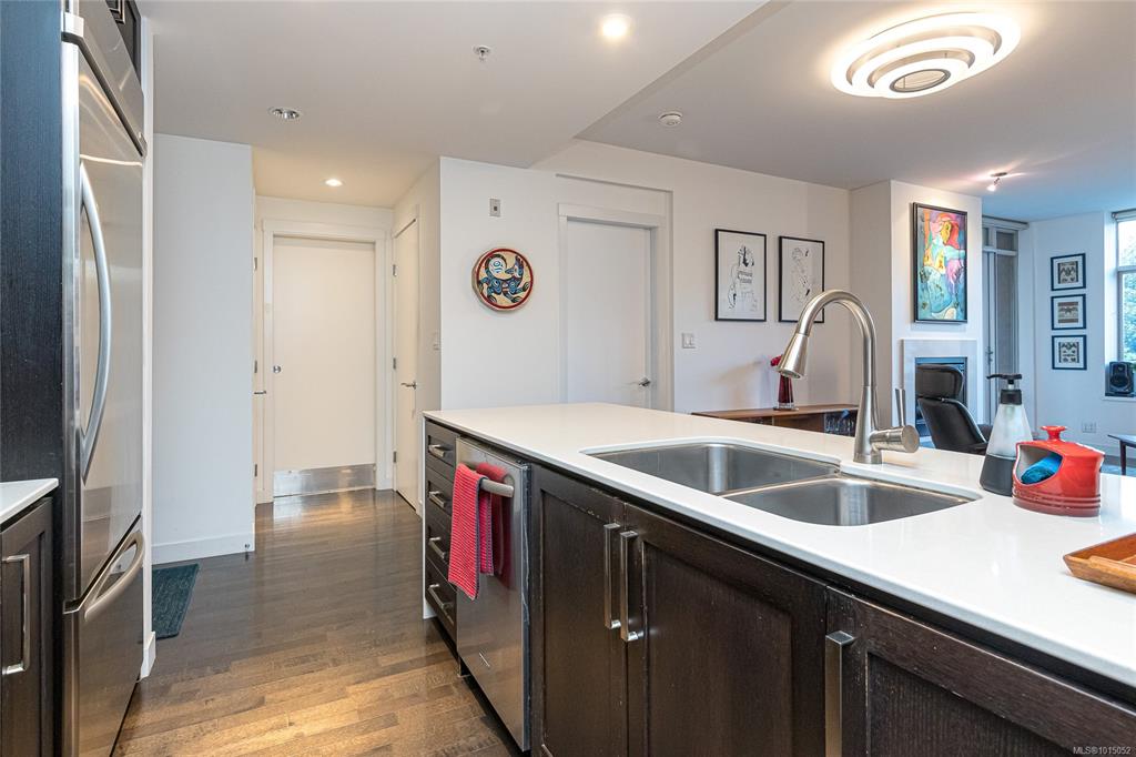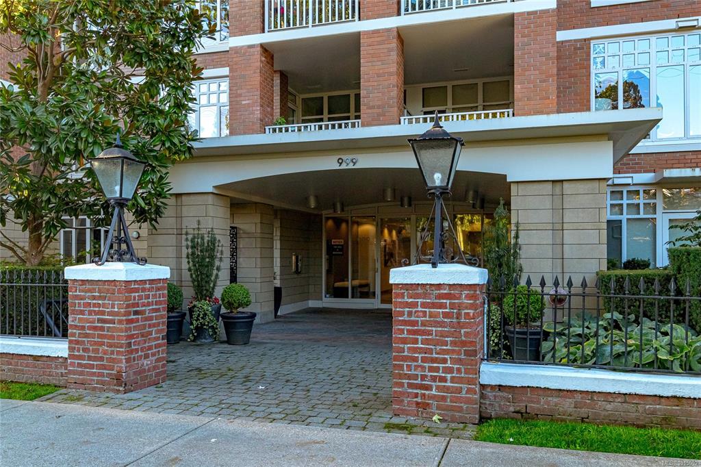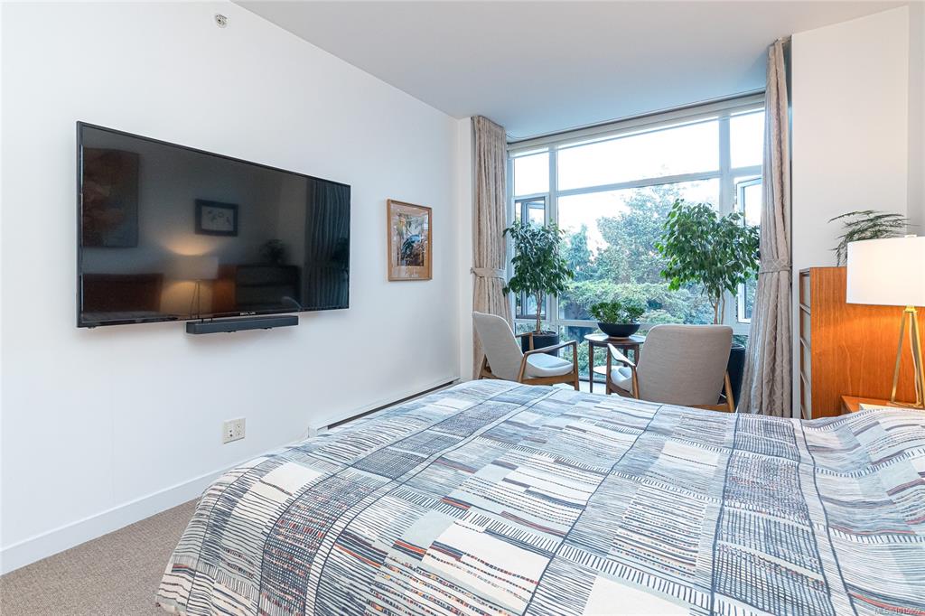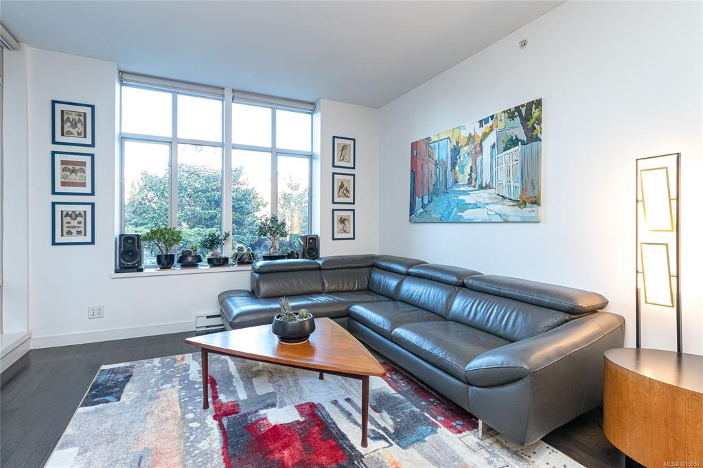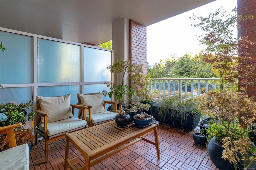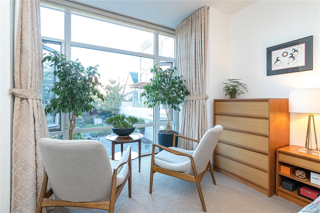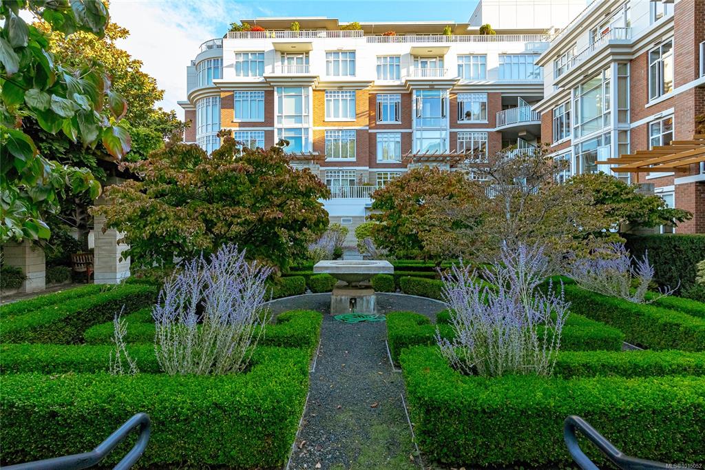 The “Chelsea” is one of Victoria’s most desirable luxury concrete & steel condo buildings! No substitute for quality! Exceptional layout & a true city OASIS! Quiet, west facing, & overlooking a meticulously maintained courtyard garden. 2 generous bdrms separated by an open-living plan with ~9ft ceilings. The gourmet kitchen has quartz countertops, KitchenAid SS appliances, lots of cabinet/counter space (& even a newer garburator!). Other features include classy engineered hardwood floors, 2 underground sec...