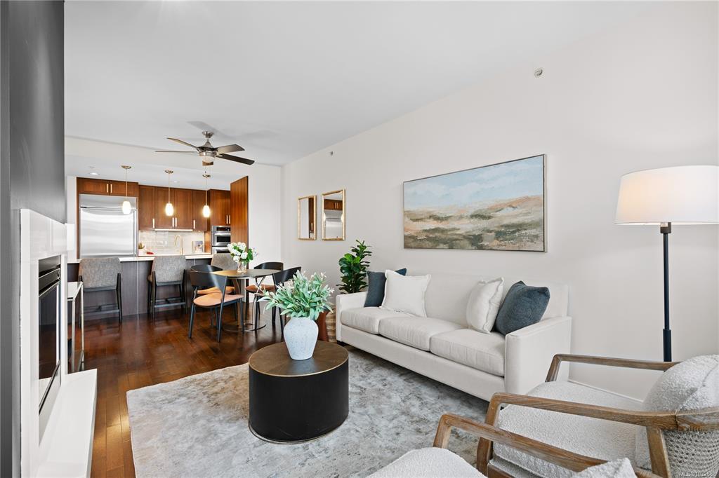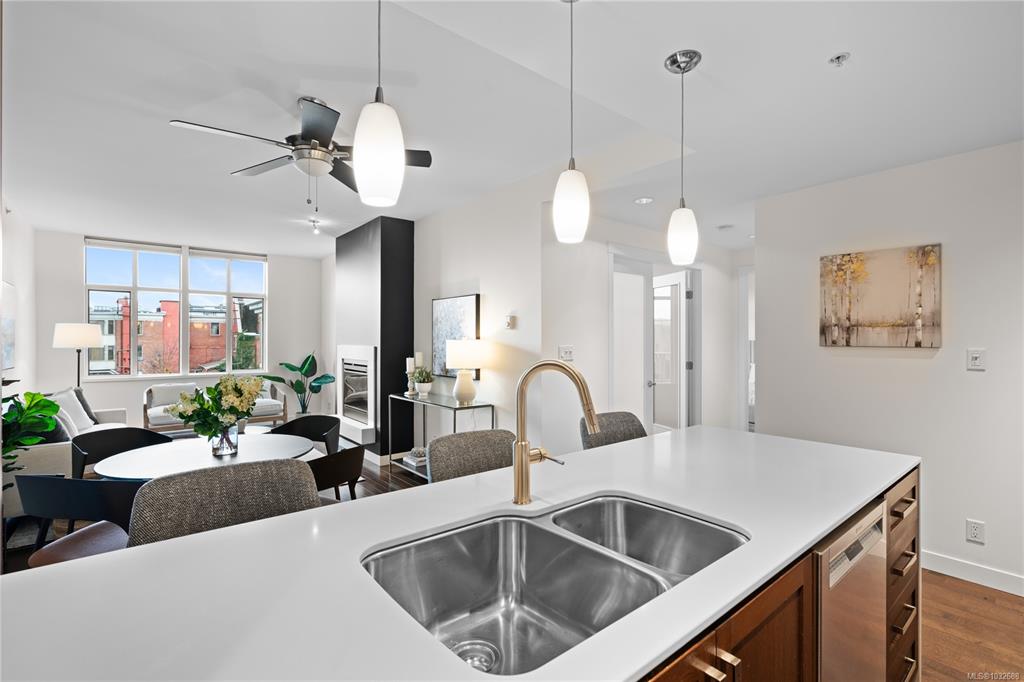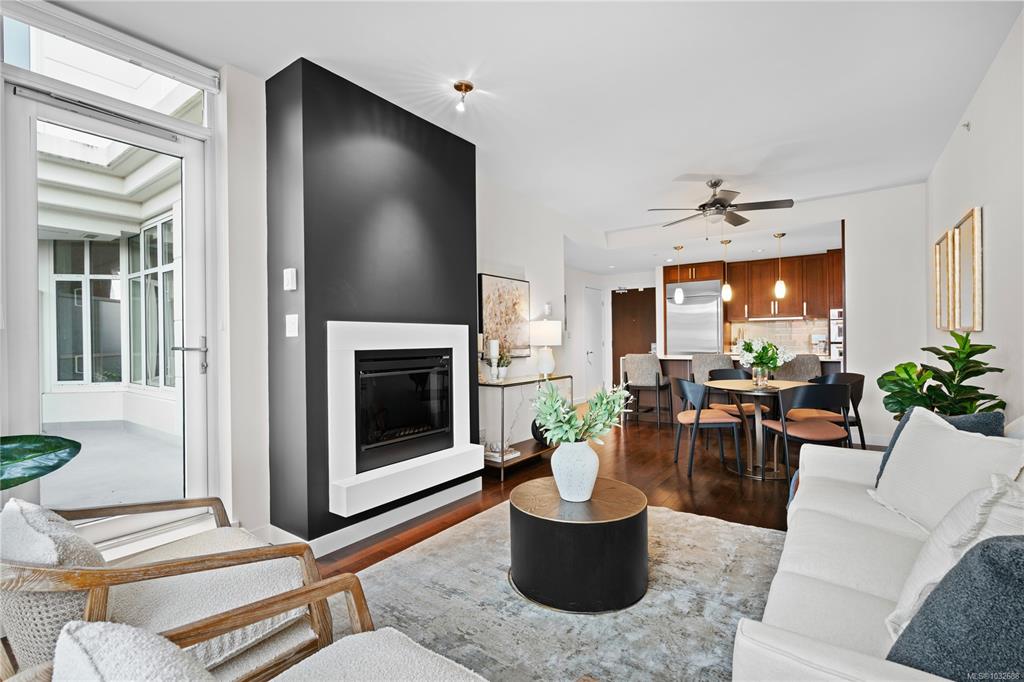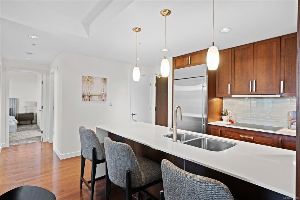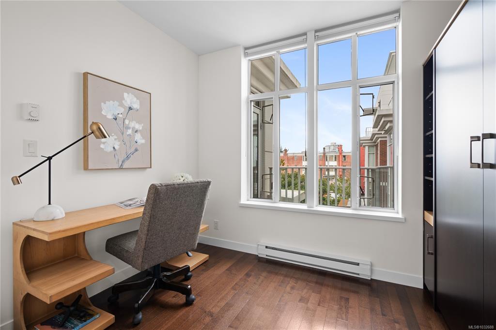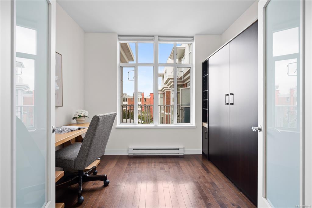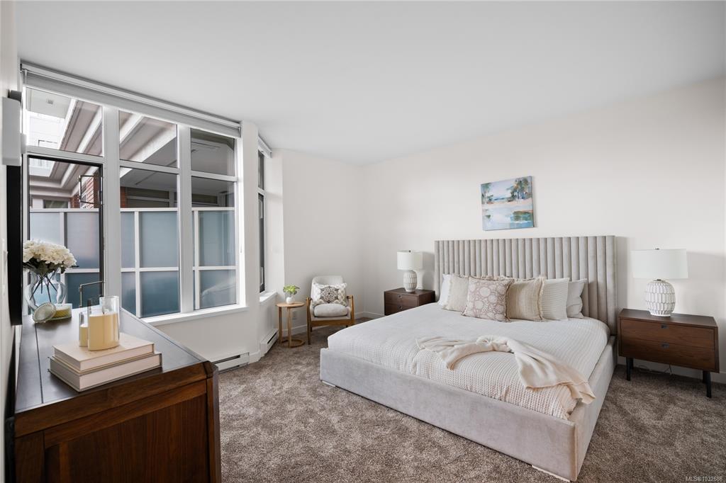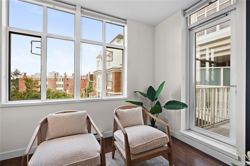 The 'Chelsea' is one of the more desirable addresses for higher end condos in Victoria. This One Bedroom + den, 2 bath unit has west facing exposure overlooking the beautiful private courtyard. Primary bedroom has 5 piece ensuite with separate shower and soaker tub. Den has built in Murphy bed and can easily be used for a bedroom/office combo. Built by Concert this Steel and Concrete building makes for quiet neighbours. 2 pets allowed. Hardwood floors in main area and new carpet in bedroom. Well appointed ...