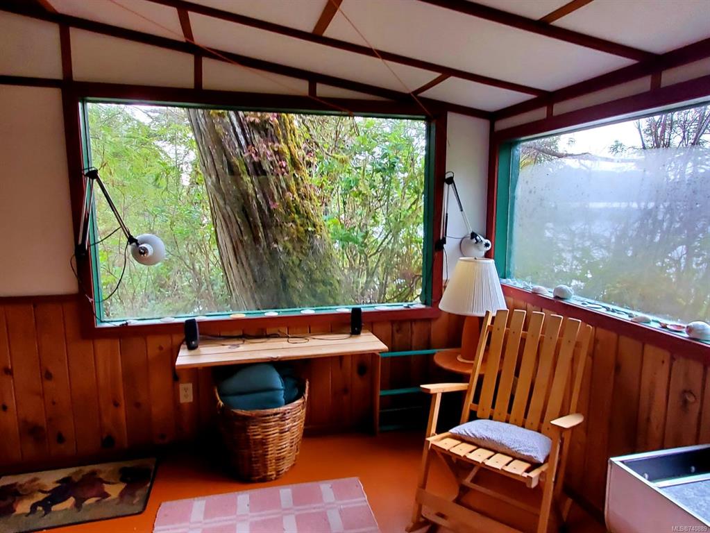 Private, remote waterfront living at its very finest. Off grid, 438 sq ft one bedroom legal cabin. Viewscape from the cabin looks south to the empty waters behind Meares Island and beyond. Ten treed acres with its own stream for a water source plumbed to the cabin. Solar powered, wood heat, propane stove and hot water. Outdoor shower, hot and cold. Fully furnished including everything needed to maintain the property. Site prep and footings for a larger building. Cell service in the area. Zoned A3, Forest Ru...